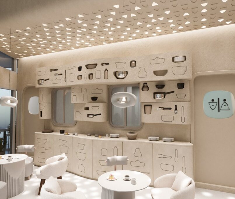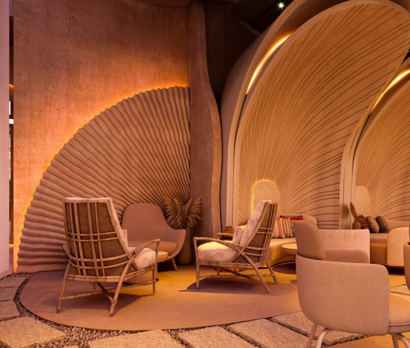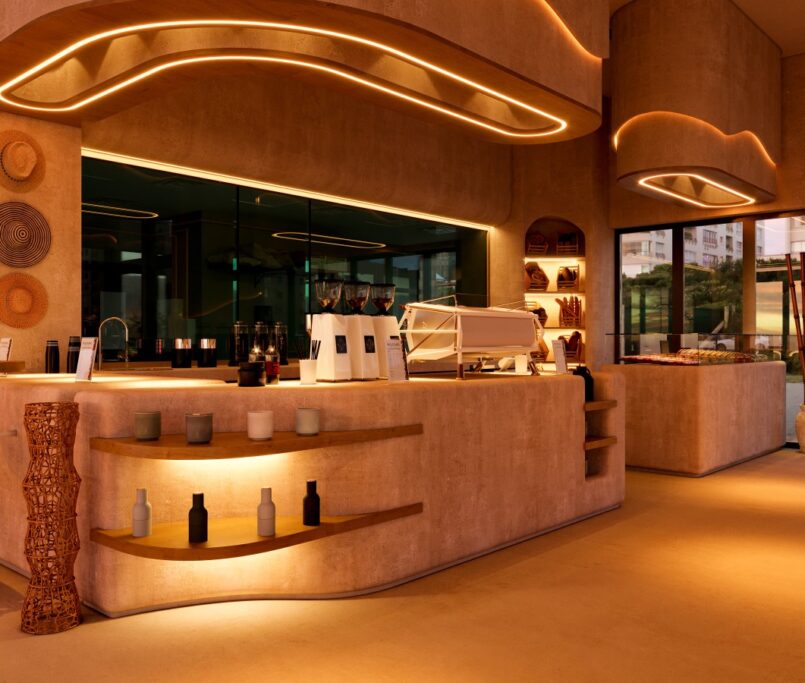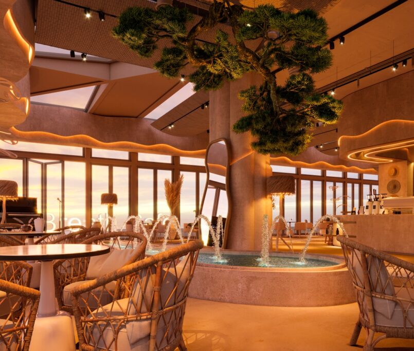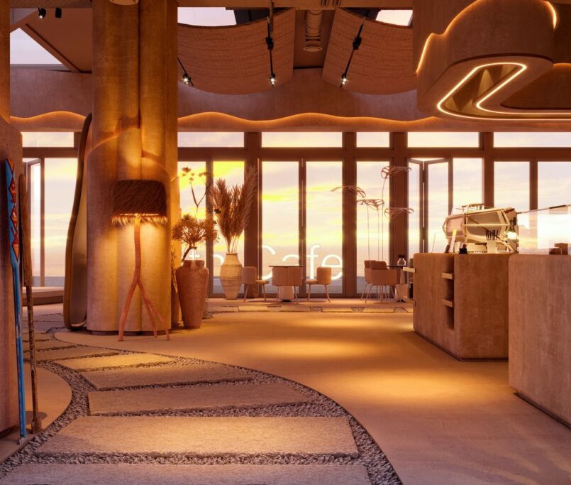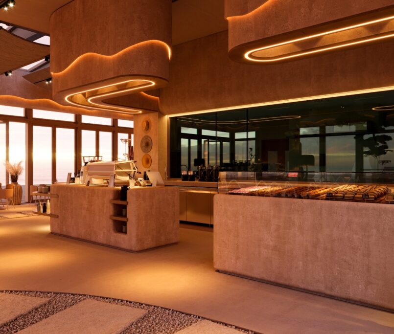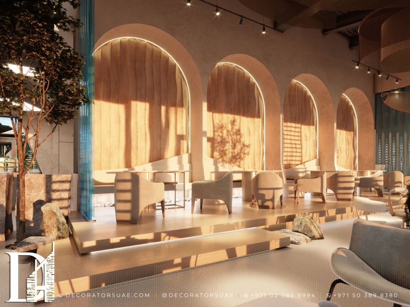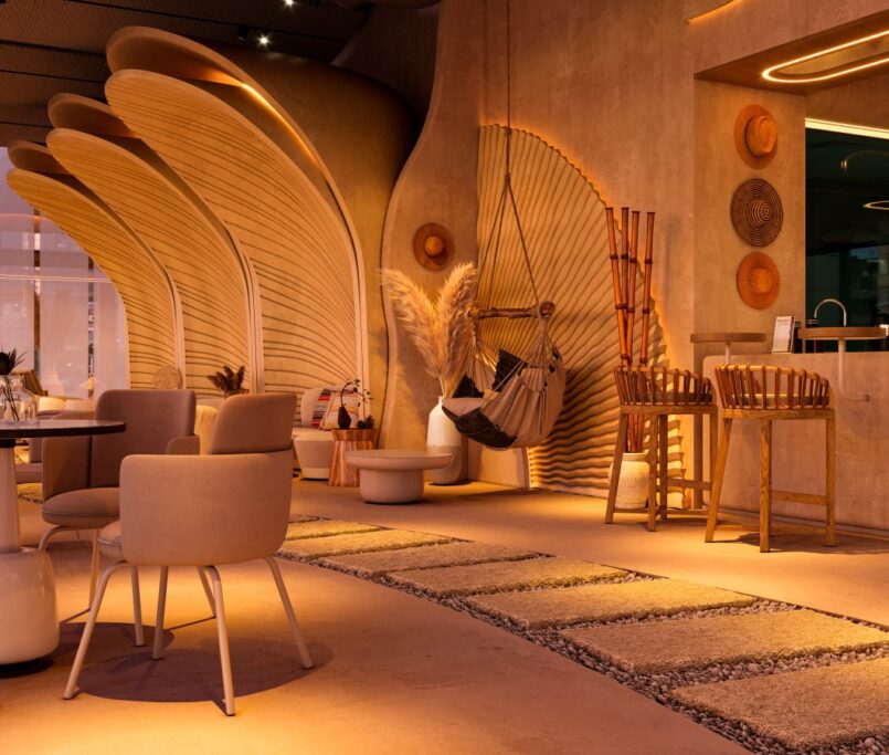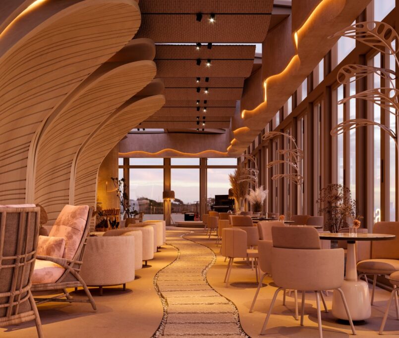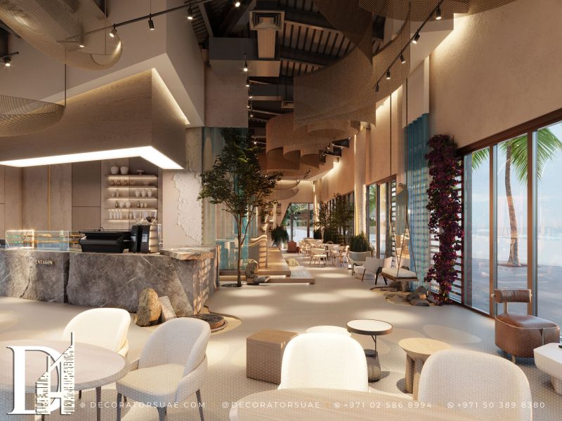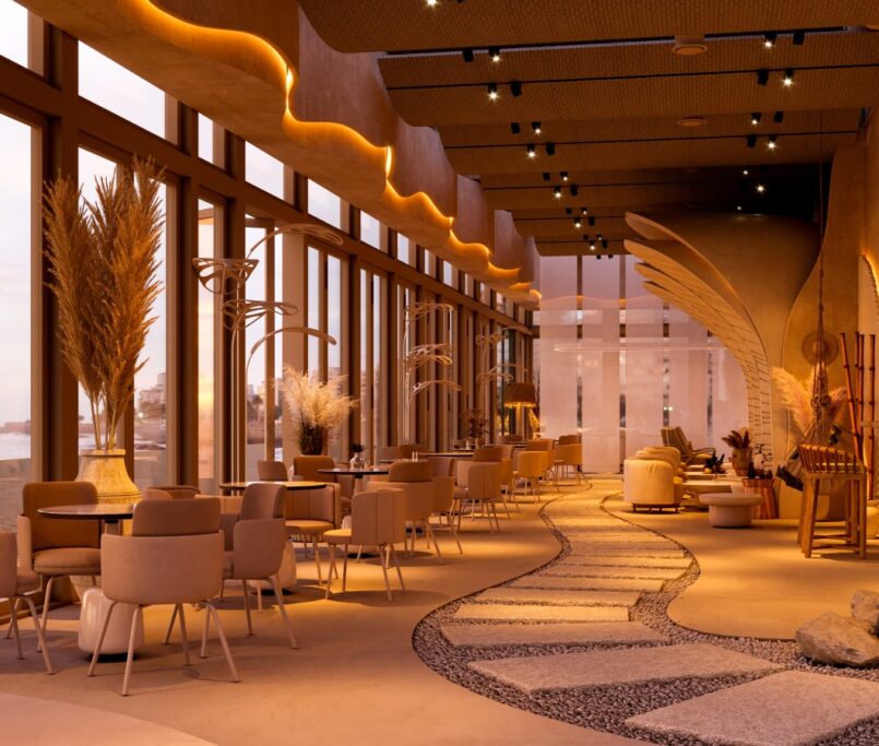 Inspired by the brilliance of nature with a focus on leaving the visitors in complete awe, the Breath Cafe is located in the high-end premises of Abu Dhabi. The design revolves around wind, ocean and trees, which are nature’s best elements.The Breath Cafe is taking its customers on a ride that mixes breathtaking sunsets with quality food. Being the perfect Instagramable location, the cafe is centered around sand, waves and seashells, along with their contrasting and collaborating shapes and textures.