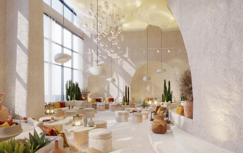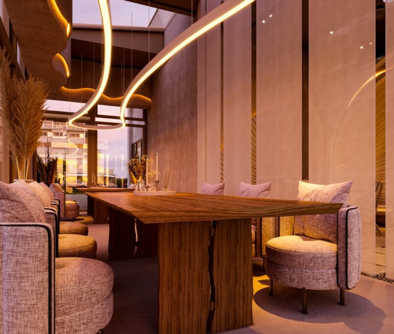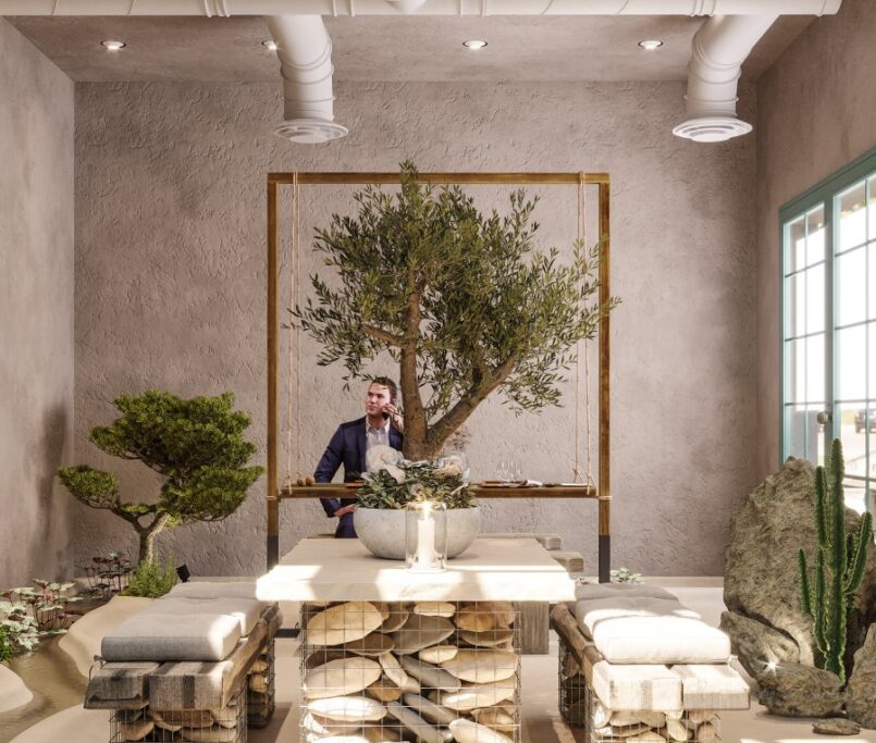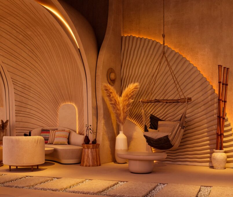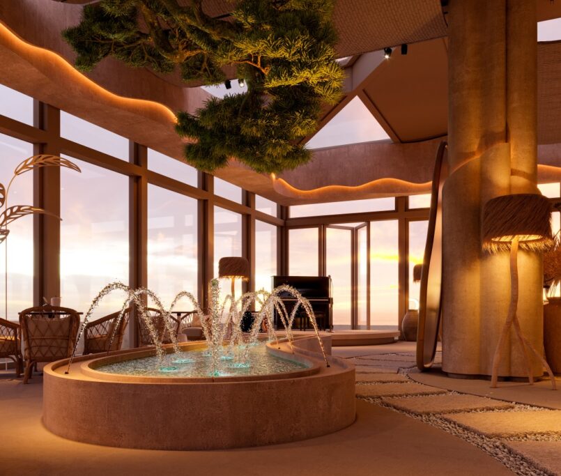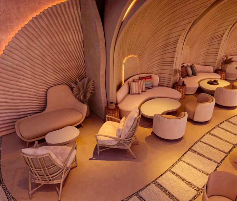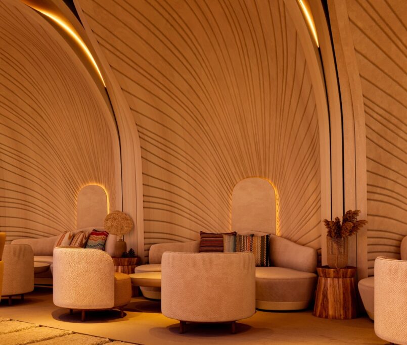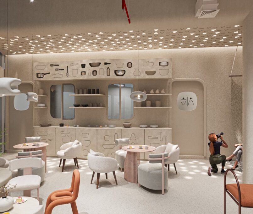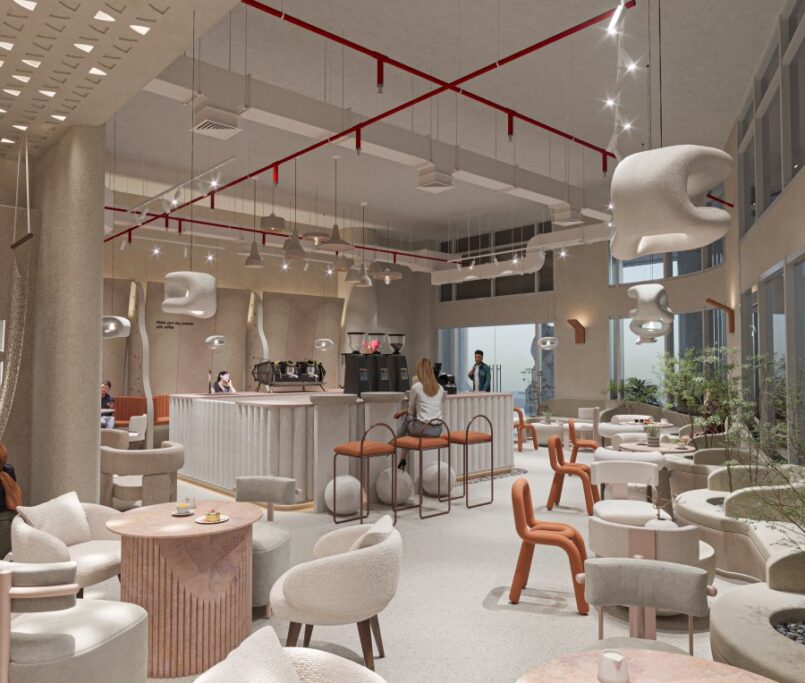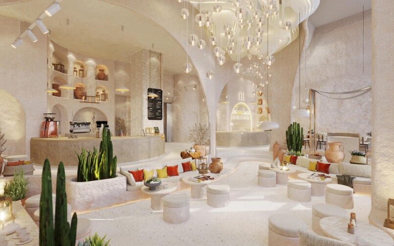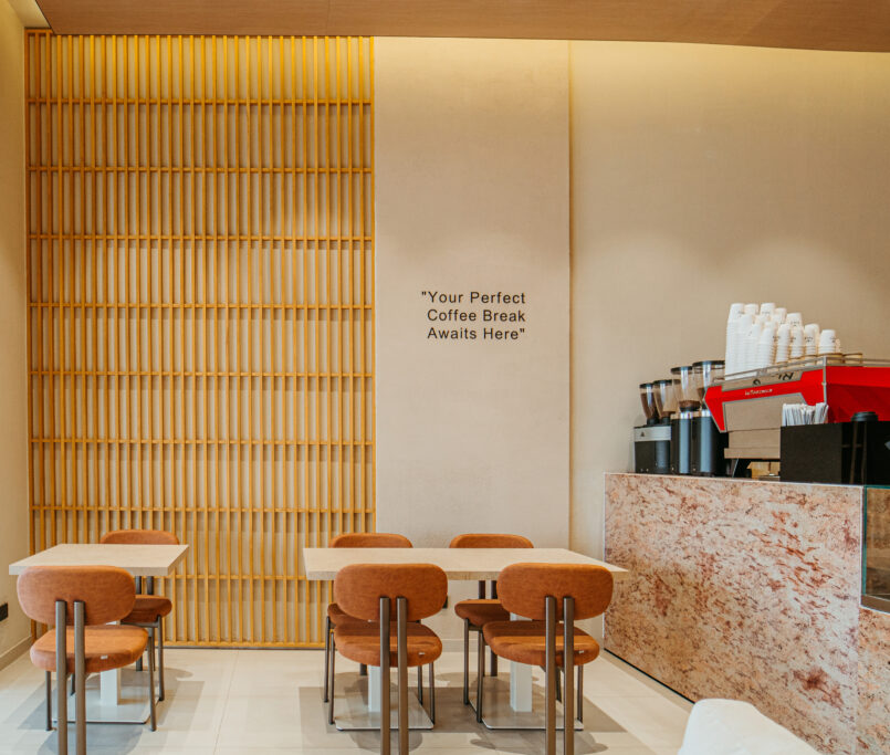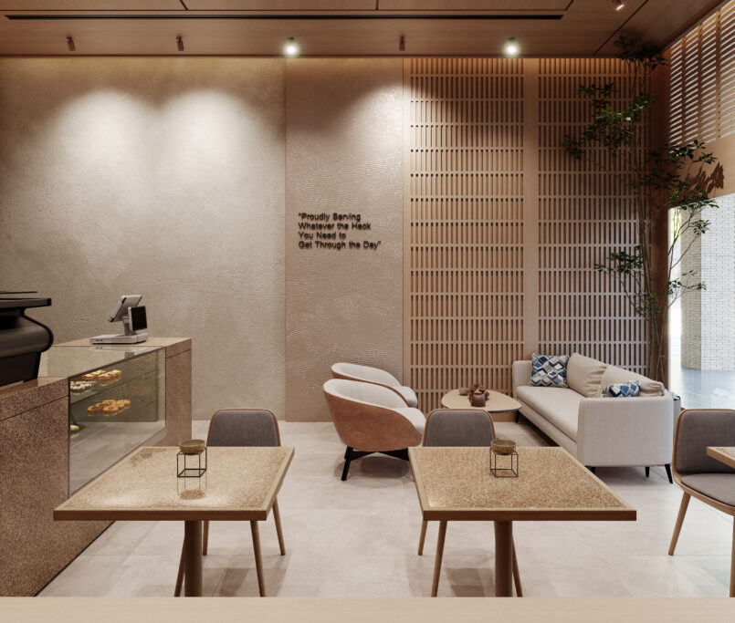 Inspired by the brilliance of nature with a focus on leaving the visitors in complete awe, the Breath Cafe is located in the high-end premises of Abu Dhabi. The design revolves around wind, ocean and trees, which are nature’s best elements.The Breath Cafe is taking its customers on a ride that mixes breathtaking sunsets with quality food. Being the perfect Instagramable location, the cafe is centered around sand, waves and seashells, along with their contrasting and collaborating shapes and textures.