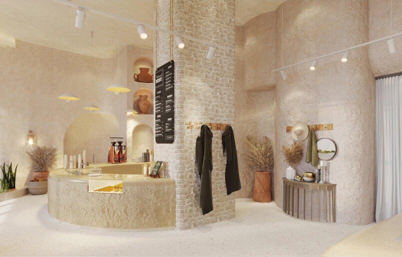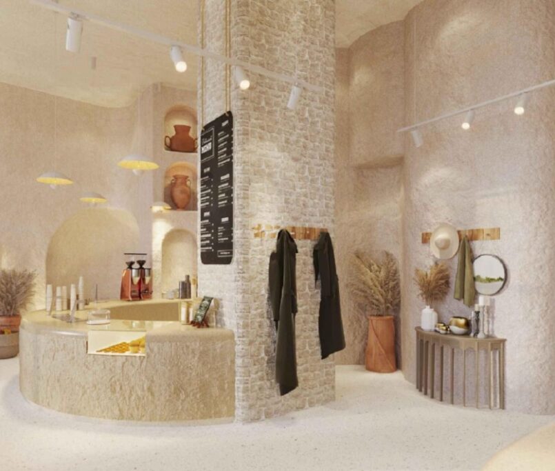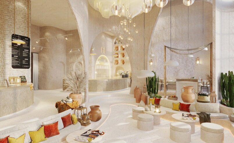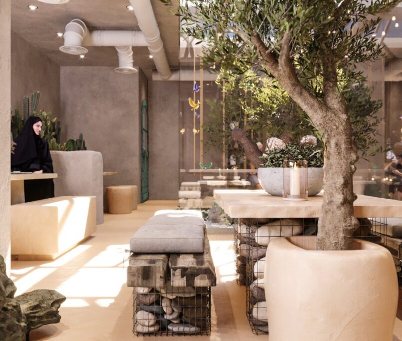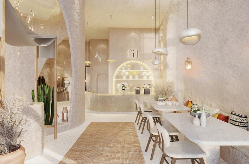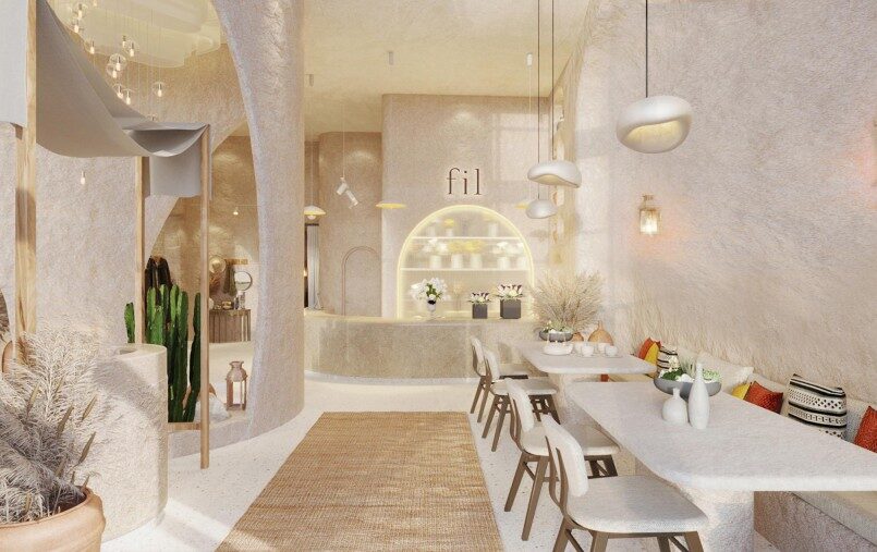 FIL Boutique pays an ode to the Emirati culture while infusing a sense of modernity in its design. The cafe mirrors Emirate culture and traditions with its subtle tones in bright sand. In several instances, the interior uses elements and inspiration from Al Muhayya Palace, which deems an old and vintage setting. FIL Boutique is the perfect example of ‘where the past meets the present’.