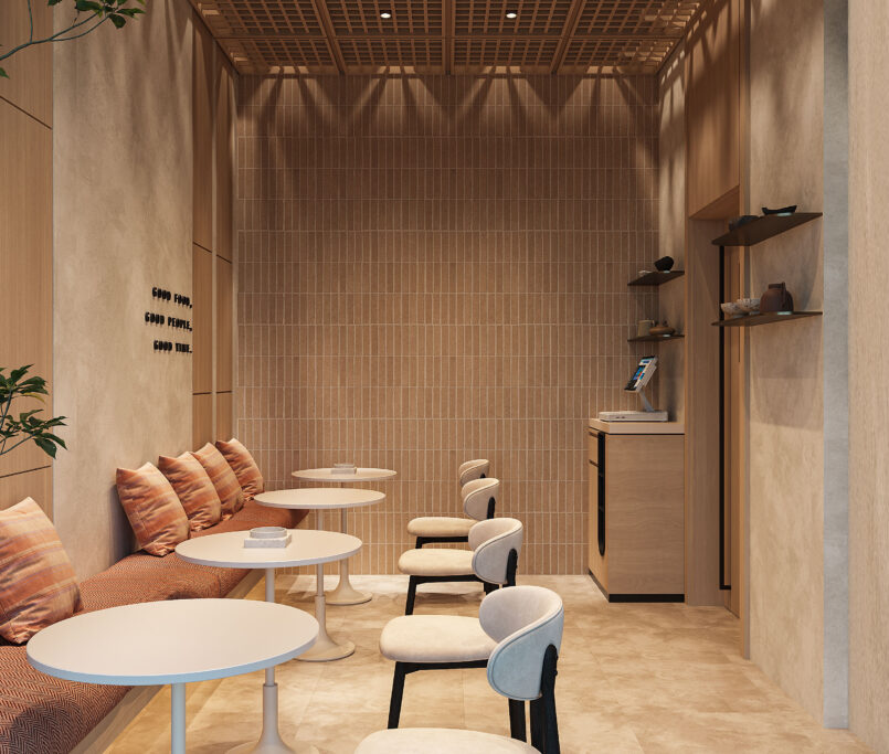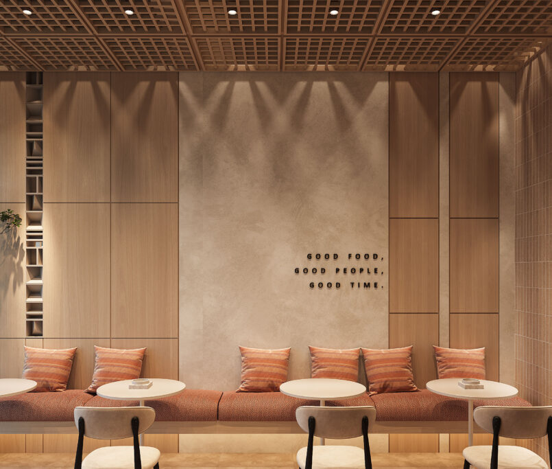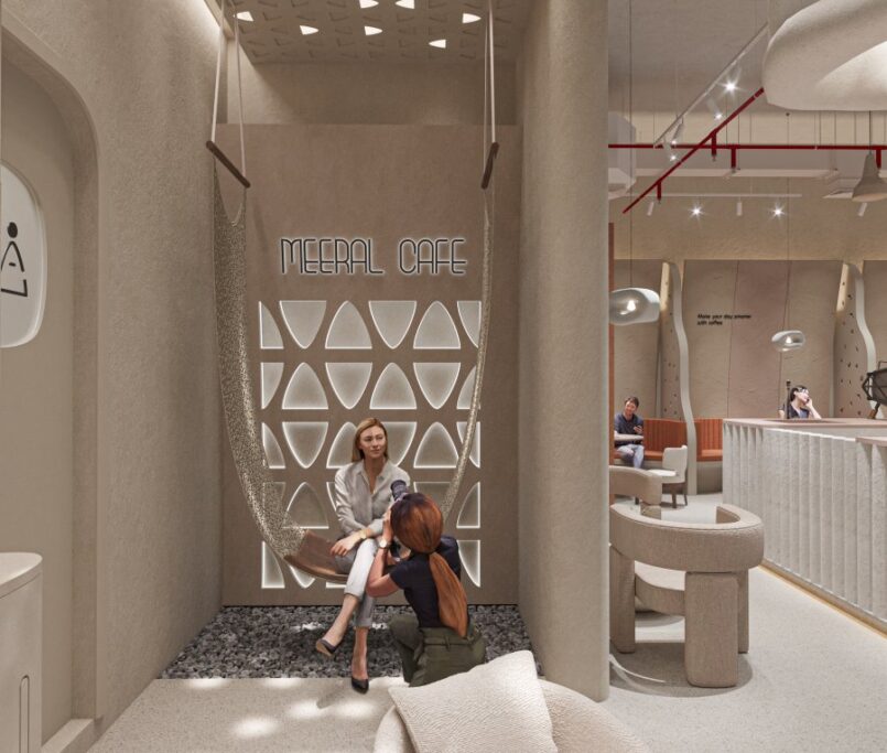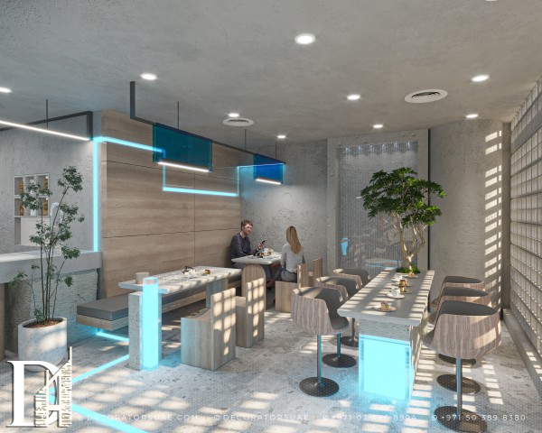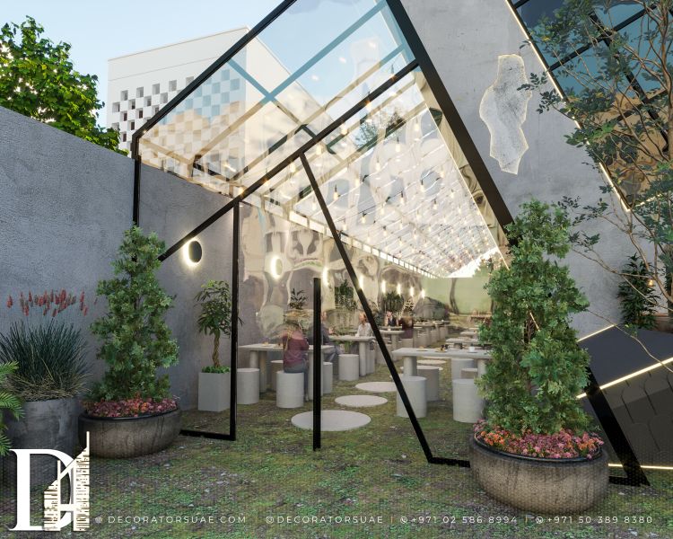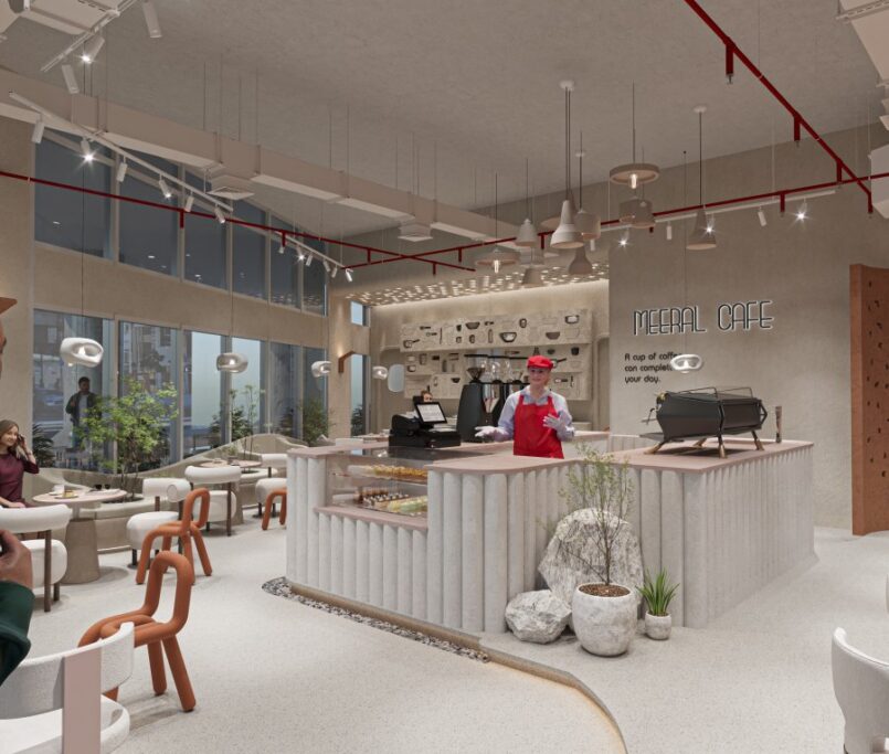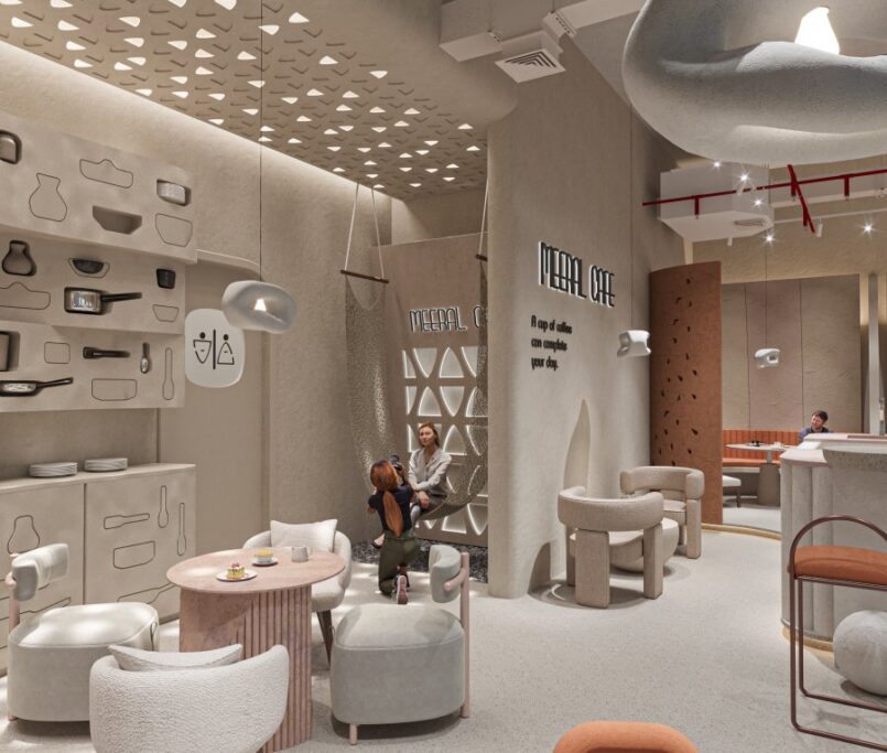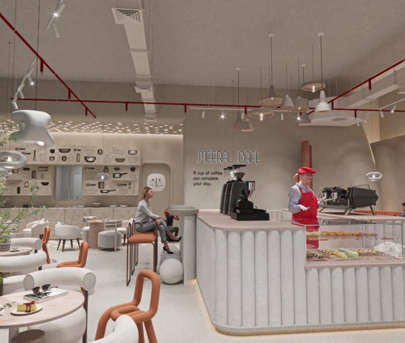 The House of Ghazal essentially inspires the design. Using our modern flair in technique and design, we have made it a functional and private space with structures close by, not overly intruding but giving a sense of togetherness. The Meeral Cafe symbolizes a private space for a family and friends-oriented setting. Meeral Cafe also pays special attention to creating a comfortable setting for customers to enjoy a good bite with some memorable Meeral Café instances.