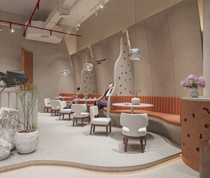 The pioneering figure of Art Nouveau, Antoni Gaudi, inspires the Tierra Cafe and its organic elements that are part of their concept design. Tierra focuses on a more natural stream of ideas and texture-centric designs, including shapes, curves and lines. For customers, this unique experience mimics the beauty of the basic abstract we witness in the everyday world.
