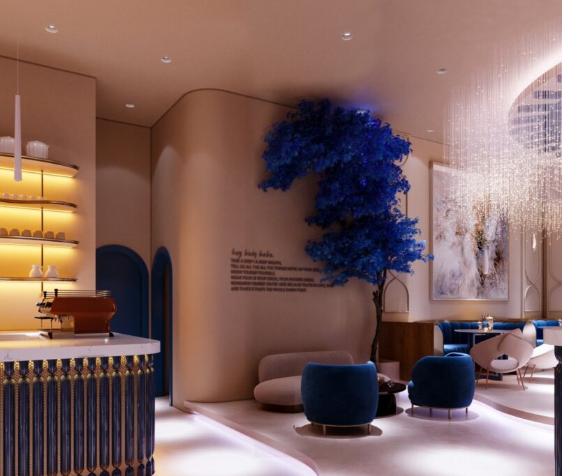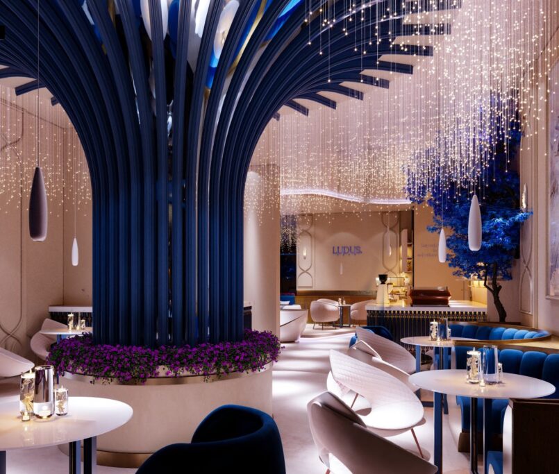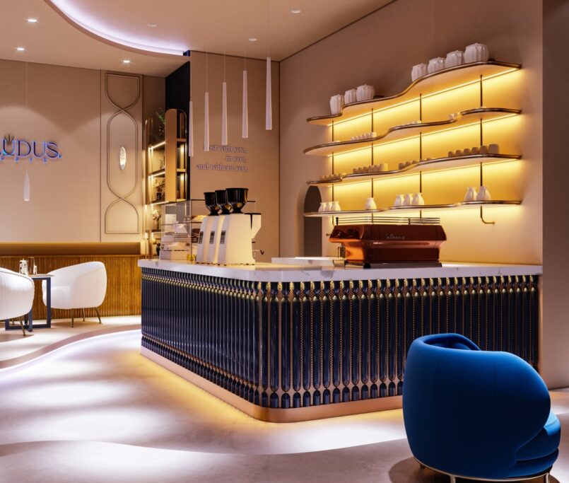 Our take on modern and elegant playfulness and subtle flirtation in design is what Ludus Cafe protrudes. The visitors experience complete amazement with interior lighting, decoration and the minuscule details representing the spark we seek. At Ludus Cafe, our goal was to amalgamate a vivid colour palette that electrifies and intensifies the senses while giving you a sophisticated touch. The concept was to create a soothing, interesting interior for everyone who visits.